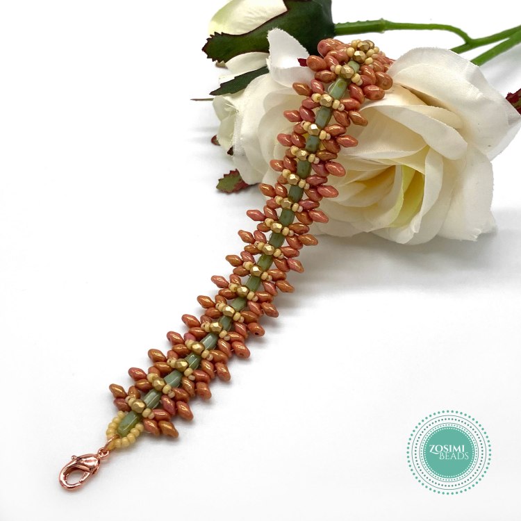Note that this pattern is written for Miyuki and Toho seed beads. If using another brand the bracelet may look different.