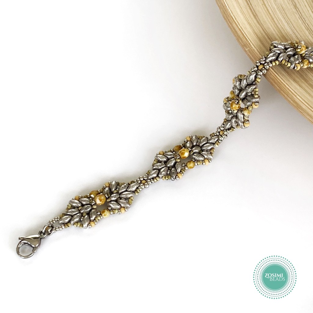 Note that this pattern is written for Miyuki seed beads. If using another brand the bracelet may look different as the size of the beads may not be the same.
