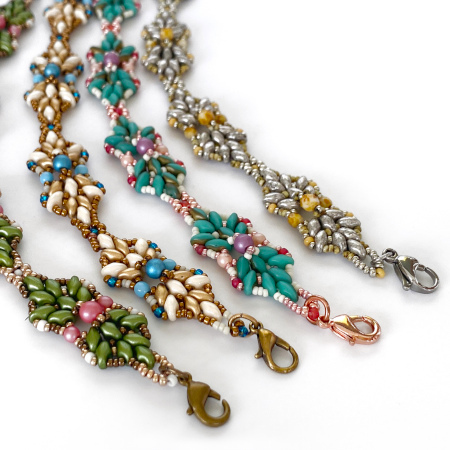Note that this pattern is written for Miyuki seed beads. If using another brand the bracelet may look different as the size of the beads may not be the same.