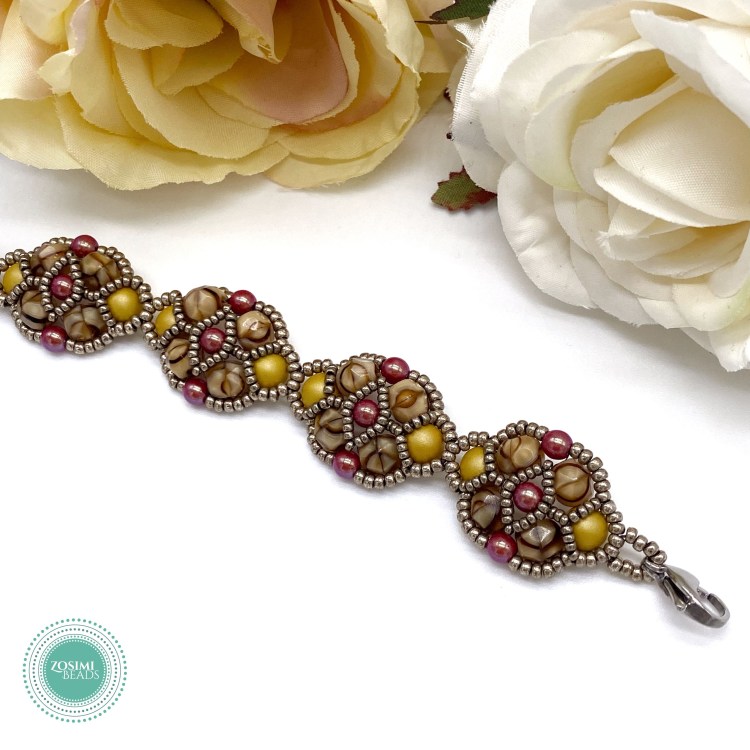 Note that this pattern is written for Miyuki seed beads. If using another brand the bracelet may look different as the size of the beads may not be the same.
