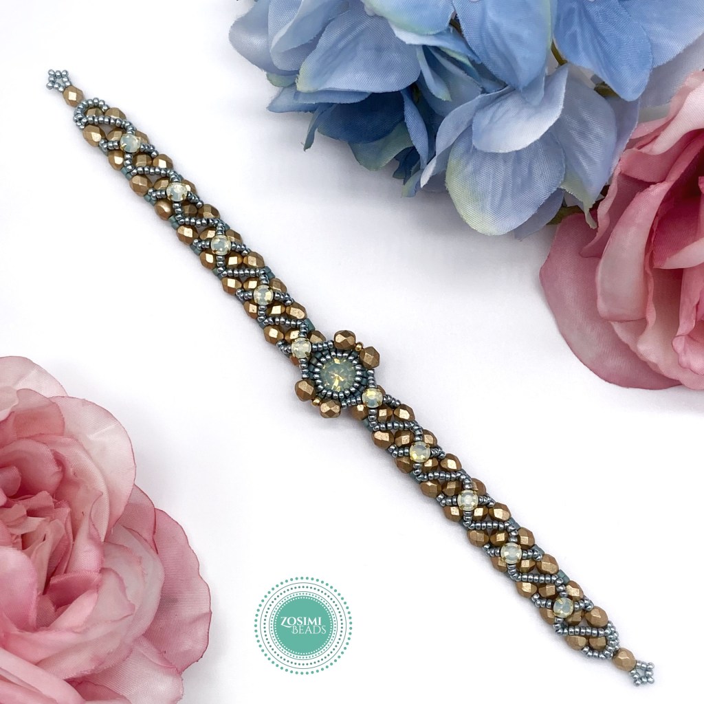 Note that this pattern is written for Miyuki seed beads. If using another brand the bracelet may look different as the size of the beads may not be the same.